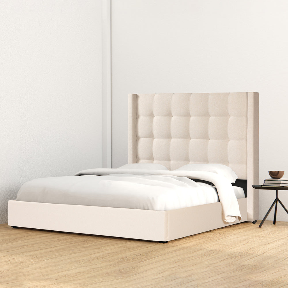 - Cabecera: Estructura fabricada en madera de pino. Tapizado con telas de importación en varios colores suaves al tacto. Estilo contemporáneo.