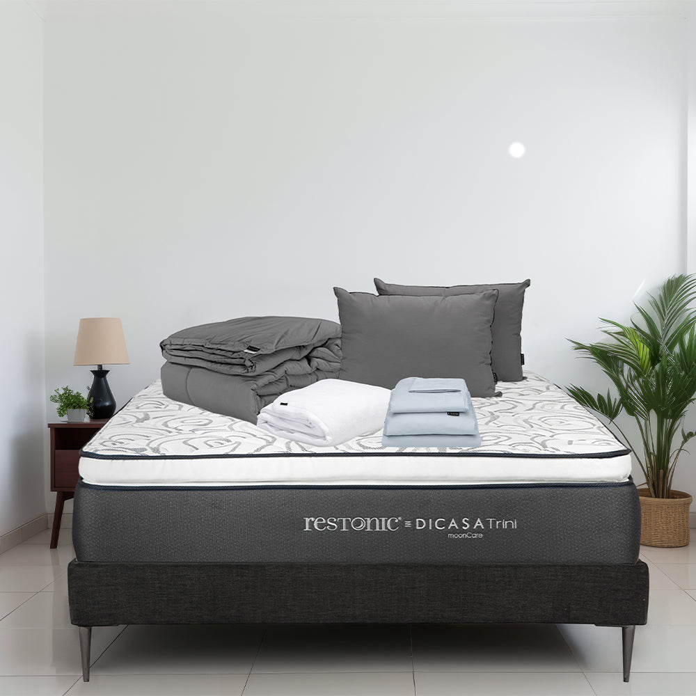 Colchón Restonic Vail con Base Slim con Ropa de Cama