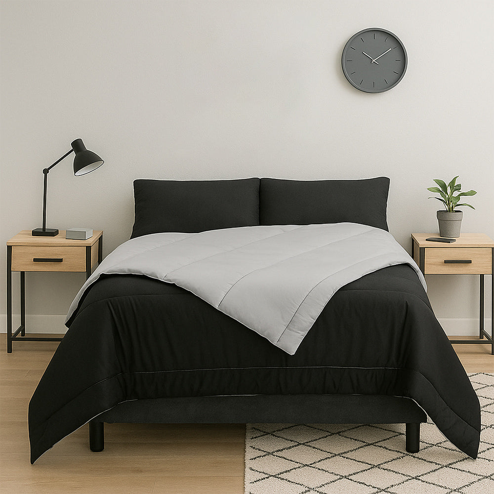 Edredón Rogga Negro-Gris Perla con Ropa de Cama